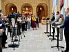 Kommunesektoren fikk 1,6 milliarder kroner mer i forbindelse med revidert nasjonalbudsjett. Her blir avtalen om RNB presenterert av Andreas Sjalg Underland (SV) (f.v.), Geir Pollestad (Sp) og lederen av finanskomiteen Tuva Moflag (Ap).