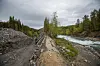 Slik ser naturen rundt deler av Beiarelva ut etter at det ble full stans i restaureringen av laksetrappene.
