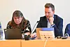 Ordfører Lars Fjeldstad (Sp) og kommunedirektør Ingvild Hjemtveit i kommunestyremøtet der en av varslerne fikk stille spørsmål til ledelsen.