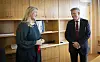 Nøkkeloverrekkelse for avtroppende kommunalminister Kjersti Stenseng (Ap) og påtroppende kommunalminister Bjørnar Skjæran (Ap). Han skal videreføre det hun startet, blant annet med boligbygging.