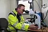 Fremmedvann er et stort problem i ledningsnettene. Her ser en driftsoperatør på vannprøver gjennom et mikroskop.