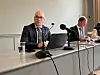 Forholdet mellom kommunedirektør Tor-Einar Skinlo (t.v.) og ordfører Stig Ove Ølmheim har lenge vært komplisert. Her fra et tidligere kommunestyremøte.